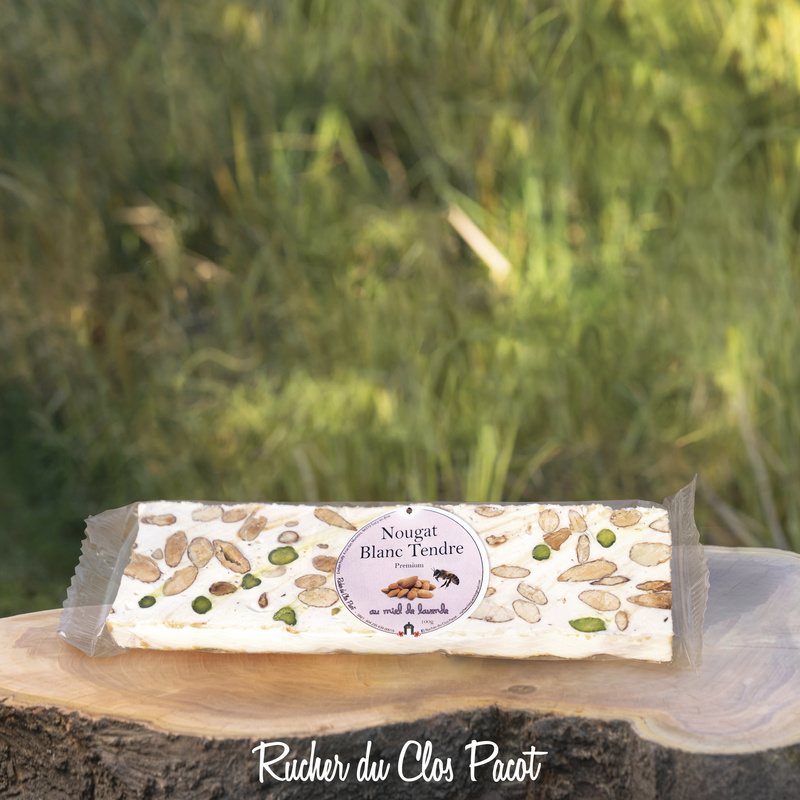 Barre de Nougat Blanc Tendre - Productions Apicoles - Rucher du Clos Pacot - Miel Pollen et produits de la ruche de Sucy en Brie - Val de Marne 94 - Voir en grand