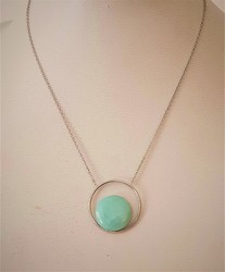 Ras de cou en porcelaine émaillée bleue turquoise, rehaussée d'un précipité de platine.