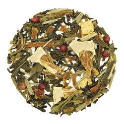 Ingrédients: Rooibos (Afrique du Sud), zestes d’orange, citronnelle, bâton de cannelle, arôme, poivre rose, cardamome, morceaux de groseille.